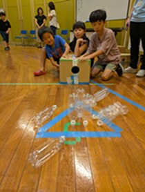段ボールで作るホバークラフトでゲームをしたり、空気砲でボーリングをしたり、参加者全員で秋の一日を楽しみました。
