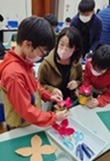 フェルトを切ってポインセチアを作り、花の真ん中には七色に輝くLEDを取り付け、楽しいクリスマスを迎える準備を参加者全員で楽しみました。