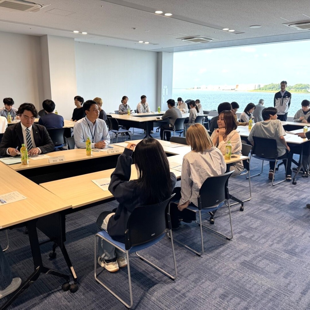 さらに、見学会の一環として、港湾事業に携わる若手技術者(港湾空港技術コンサルタンツ協会、石川県港湾漁港建設協会)との意見交換会も実施されました。特に、洋上風力発電といった注目分野に関する話題には学生たちも強い関心を寄せていました。