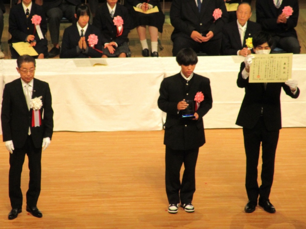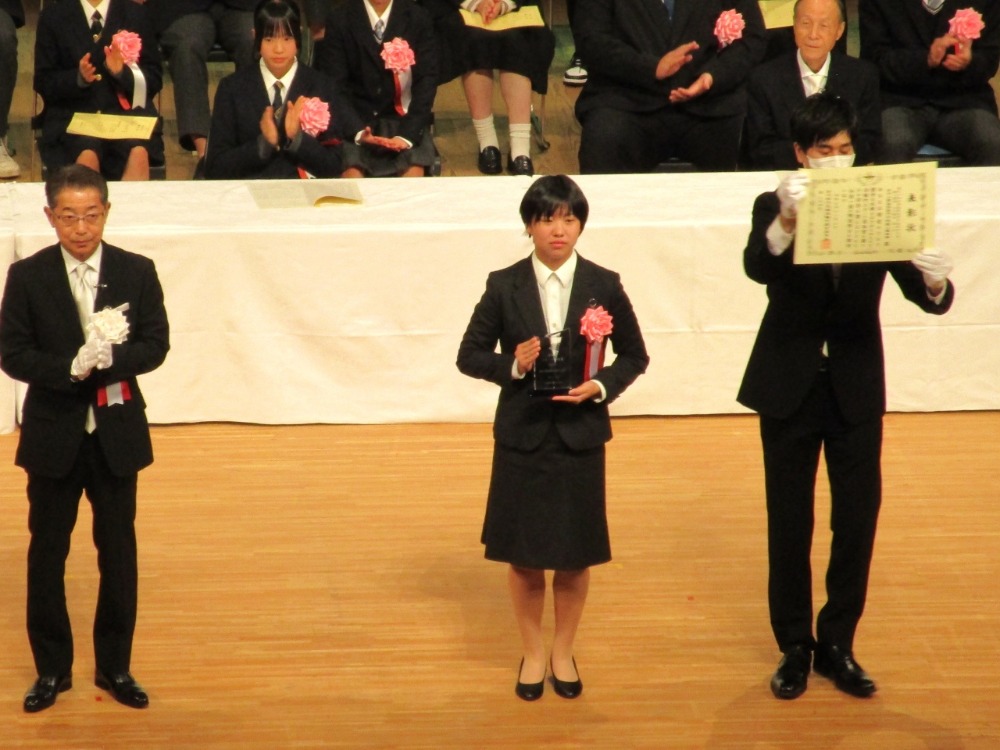 令和7年11月3日(月・祝)に津幡町文化会館シグナスにて津幡町教育委員会表彰の贈呈式が行われ、個人では環境都市工学科1年の英さん、団体ではソフトテニス部と陸上競技部女子が津幡町スポーツ奨励賞を受賞しました。この表彰は津幡町の教育、芸術文化及びスポーツの振興と発展を図るため、その功績が顕著な個人又は団体に対して行われます。