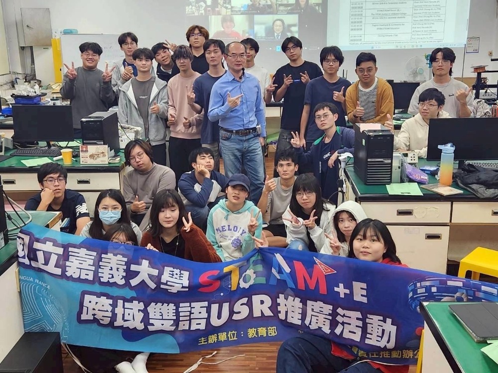 2025年7月には、蘇教授に来校いただき、電子情報工学科および環境都市工学科の4年生を対象に、グリーンエネルギーをテーマとした英語による特別授業を実施していただきました。また、2024年度4年次の海外研修では、電⼦情報⼯学科のクラス全員が嘉義⼤学を訪問し、蘇教授によるSTEAM×AIに関する講義を受講するなど、対面での交流も行われています。
