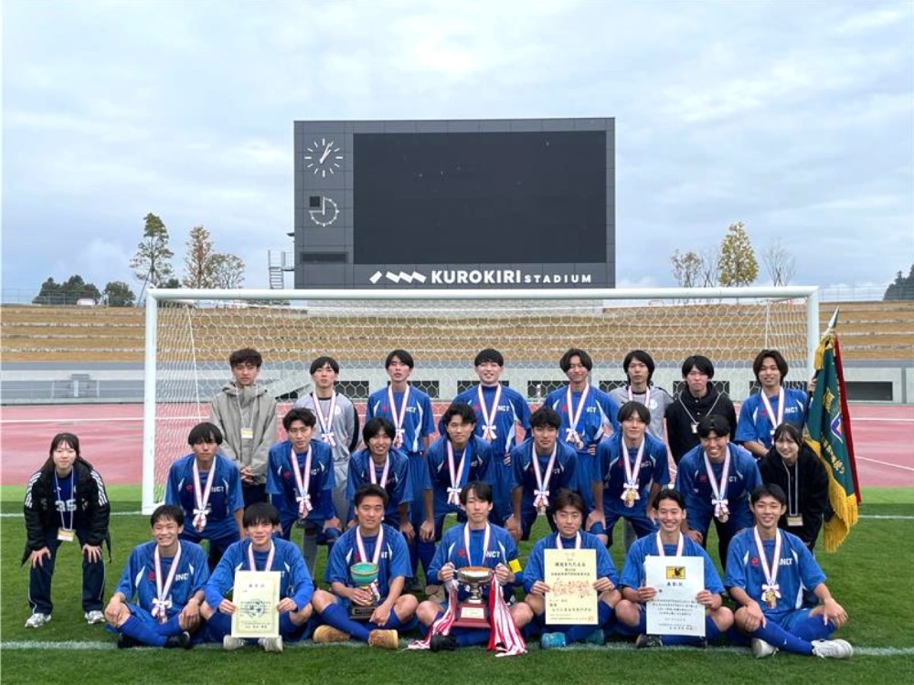 2025年12月20日(土)から24日(水)にかけて、宮崎県都城市の山之口運動公園および高城運動公園を会場として開催された「第60回全国高等専門学校体育大会サッカー競技 兼 第58回全国高等専門学校サッカー選手権大会」において、本校サッカー部が初優勝を果たしました。