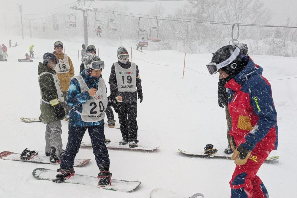 午前中は、参加者がレベル別に分かれてスキーおよびスノーボードのスクールに入校しました。初心者はブーツの履き方やリフトの乗り方などの基礎から学び、上級者はより高度な技術の習得に挑戦しました。午後にはゴンドラに乗って山頂まで移動し、留学生と寮生が一緒に滑走を楽しむ姿が見られました。