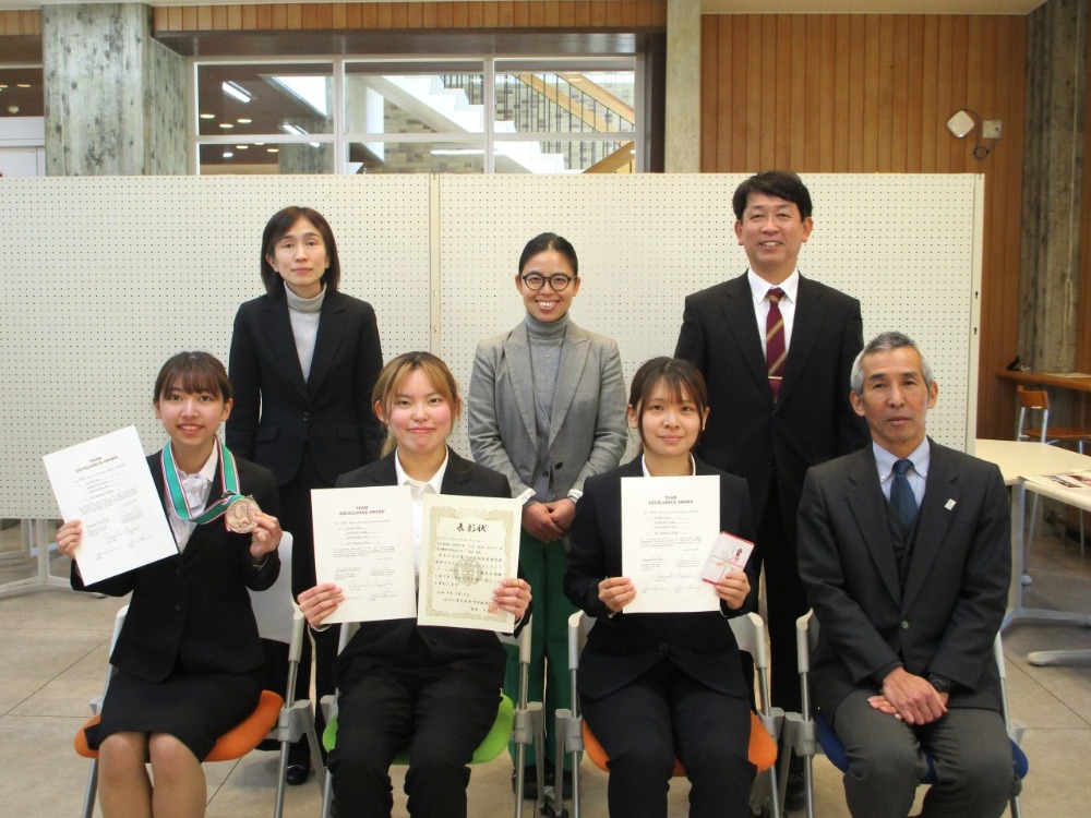 表彰式では、関係教職員が見守る中、富田校長より代表学生へ賞状が授与され、これまでの努力と大会での健闘を称えました。