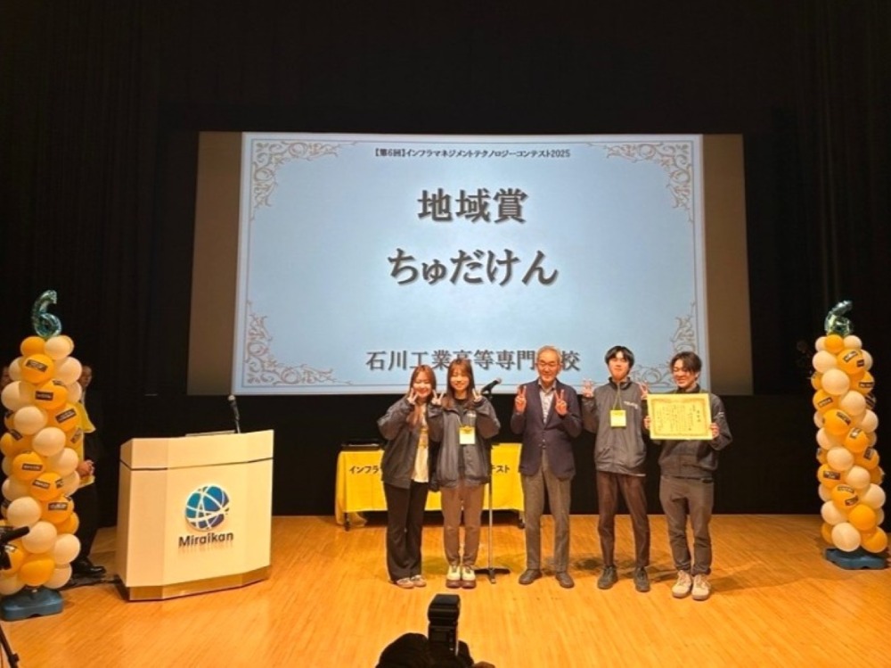 第6回インフラマネジメントテクノロジーコンテスト(通称:インフラテクコン)2025において、本校の各チームが「地域賞」および「プラチナ賞」を受賞しました。