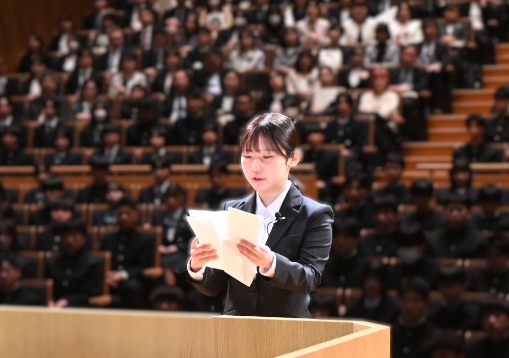 式では、入学者の名前が1人ずつ読み上げられた後、富田大志校長から入学許可が宣言され、機械工学科の谷内成実さん、環境建設工学専攻の池田茉結さんが入学者代表宣誓を行いました。