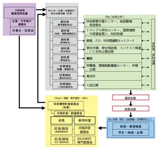 石川高専全体では,下図のような教育点検改善システムを構築し,運用しています。