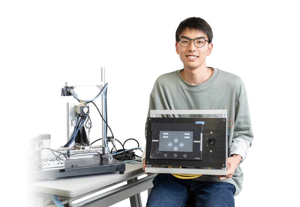 入学前は機械について深く考えたことはありませんでしたが、授業で機械工学について学ぶうちに機械への関心が高まっていきました。機械工学科では1年次から専門的な授業があり、座学だけでなく工場での実習もあります。実践的な授業が多く、特に印象に残っているのは、弁当を配送するロボットを作るコンテストです。チームで協力して意見を出し合い、試行錯誤を重ねながらアイディアを実際に形あるものへと作り上げることで、大きな達成感を得られました。機械に詳しくなくても楽しく学べる学科なので、ぜひ一緒に学びましょう。