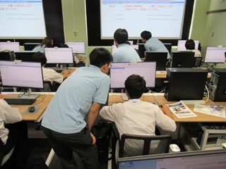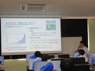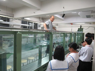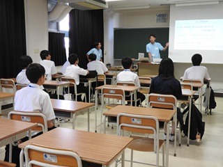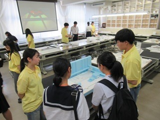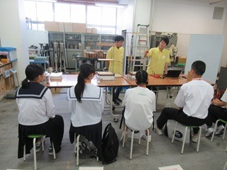 保護者の方には中学生とは別の教室にお集まりいただき、本校校長の挨拶、校長補佐の本校概要説明をお聞きいただきました。その後、コースに分かれて各専門学科の説明を聞いたり、中学生が体験している様子を見学していただきました。