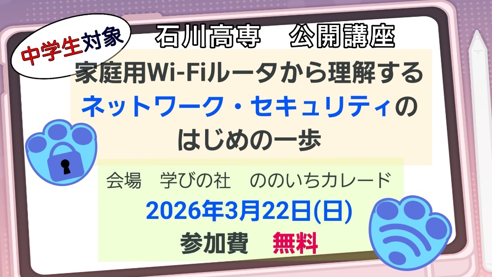 【公開講座】家庭用Wi-Fiルータから理解するネットワーク・セキュリティのはじめの一歩