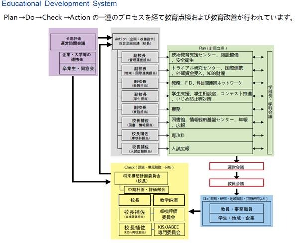 石川高専全体では,下図のような教育点検改善システムを構築し,運用しています。